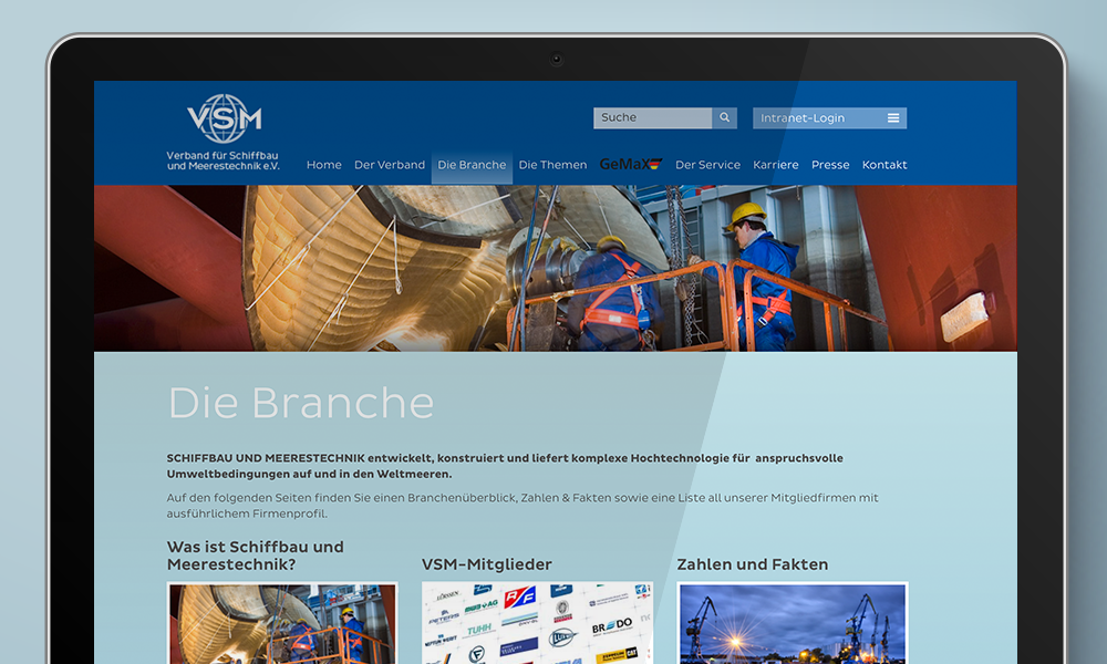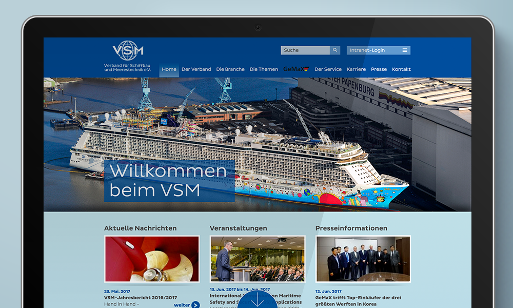Der Verband für Schiffbau und Meerestechnik bündelt zahlreiche Unternehmen aus der maritimen Wirtschaft: Schiffbauunternehmen, Zulieferer, Ingenieurdienstleister – die Stärkung des maritimen Standortes und die Vernetzung zwischen den Akteuren stehen ganz oben auf der Agenda. Der neue Internet-Auftritt informiert über die Arbeit des Verbandes und liefert mit seinem umfangreichen Service-Bereich wichtige Anknüpfungspunkte für die Mitgliedsunternehmnen.