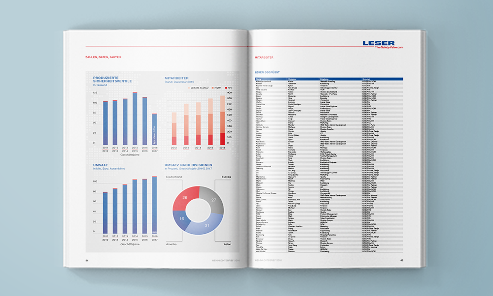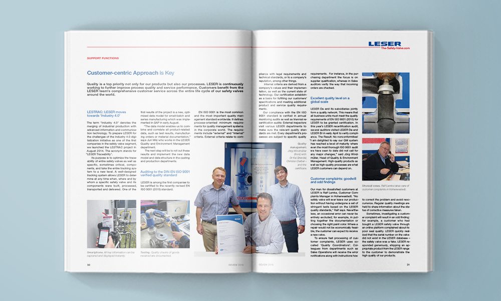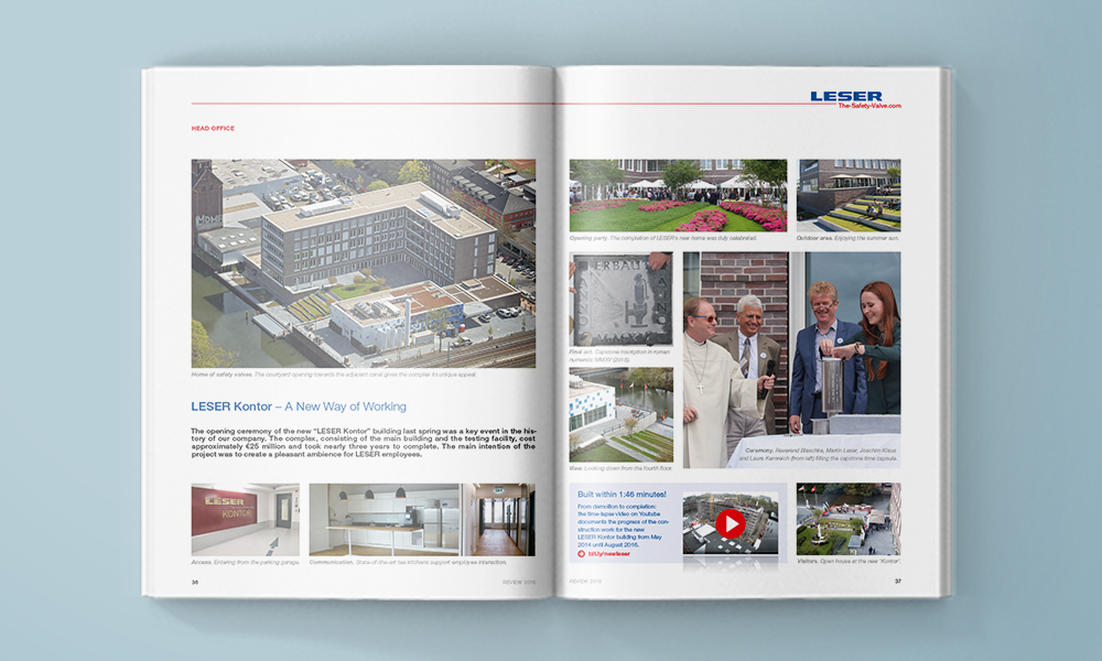 Zum Jahresende informiert LESER seine Kunden, Geschäftspartner und Mitarbeiter über wesentliche Entwicklungen im Markt und im Unternehmen. Produktinnovationen, Projekte, Messeauftritte – der traditionsreiche Weihnachtsbrief („review“) hält die Leser über die einzelnen Kerngeschäftsfelder („core activities“) des weltweit tätigen Sicherheitsventilherstellers auf dem Laufenden.